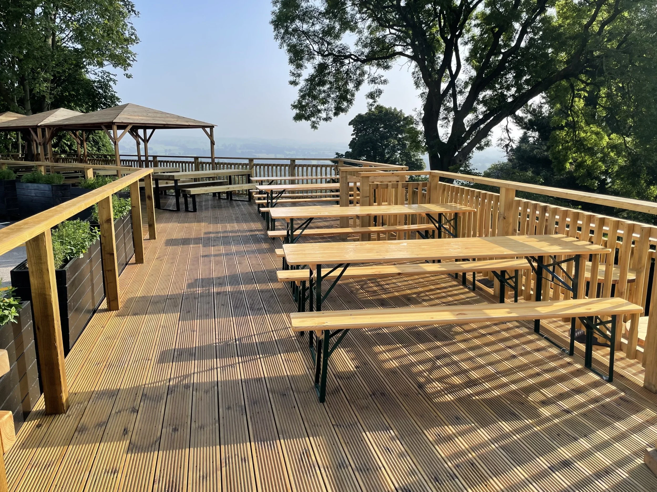 Our beautiful terrace, with covered seating and unrivalled views over the Wharfe Valley is the place to be on sunny days. From here you can head down to the lower beer garden to enjoy a family friendly lawn area with picnic tables and even deck chairs. As the sun sets the festoon lights are turned on and heaters take the chill out of the evening air.