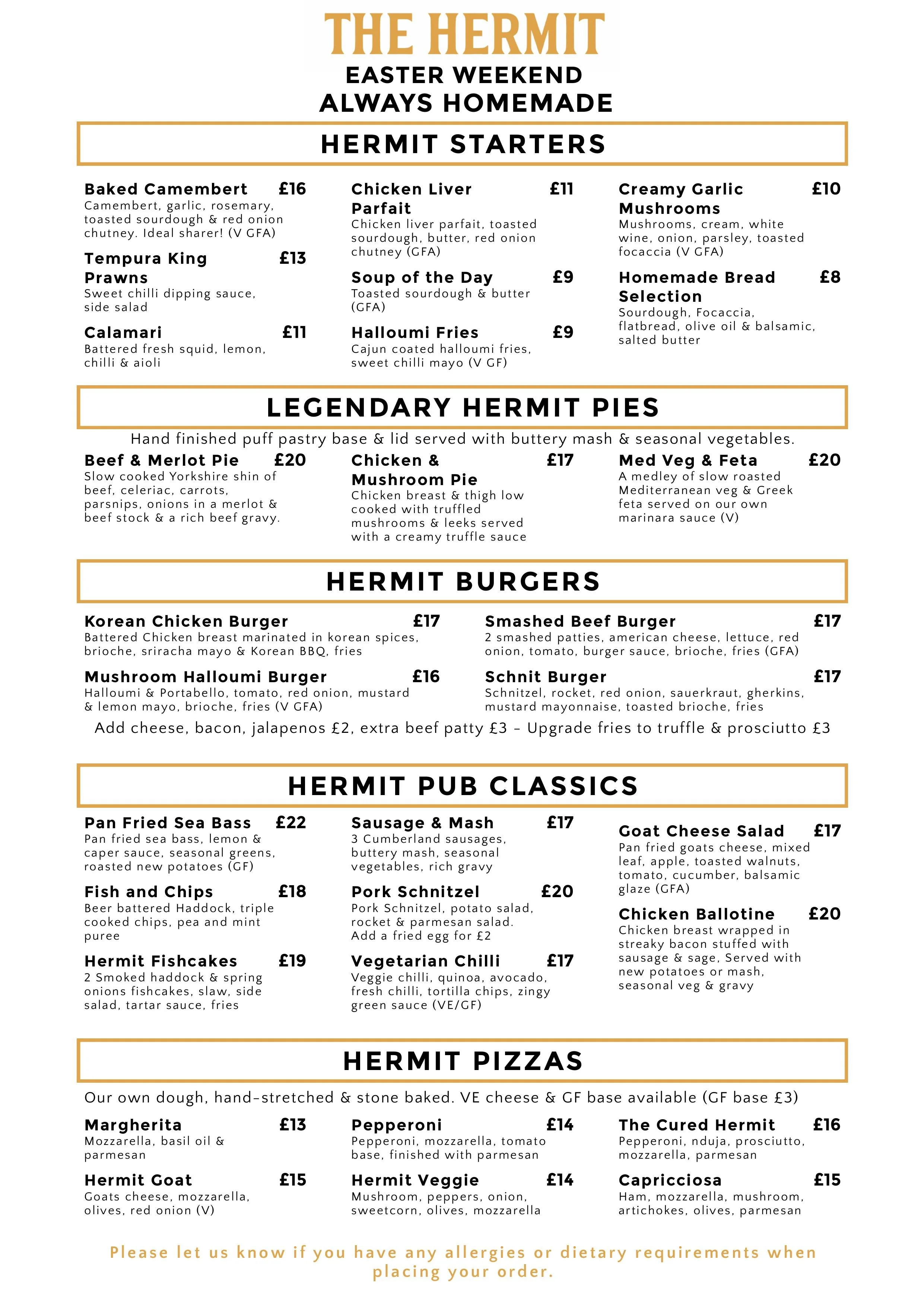 Bring everyone together this Easter at The Hermit Inn and tuck into our delicious home-cooked dishes